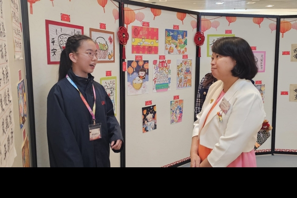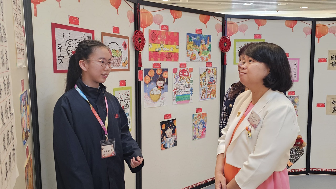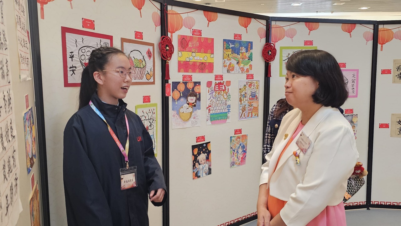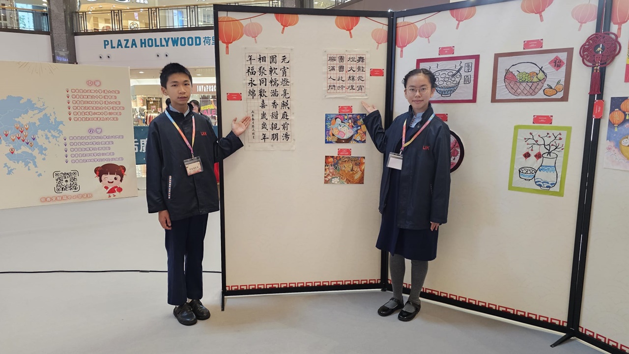 展覽當天正值農曆十五元宵佳節,本校展出了七幅以元宵佳節為主題的藝術作品,展覽吸引了眾多嘉賓前來參觀。我校的兩位書法代表---6A盧元心和6B黎兆翔同學更擔任導賞員,為嘉賓詳細介紹作品的創作意念,讓嘉賓深入了解作品傳達的的意思。此外,學校還特別安排學生前往參觀展覽及一起猜燈謎,增進他們對傳統文化和藝術的欣賞能力,促進藝術教育的發展。