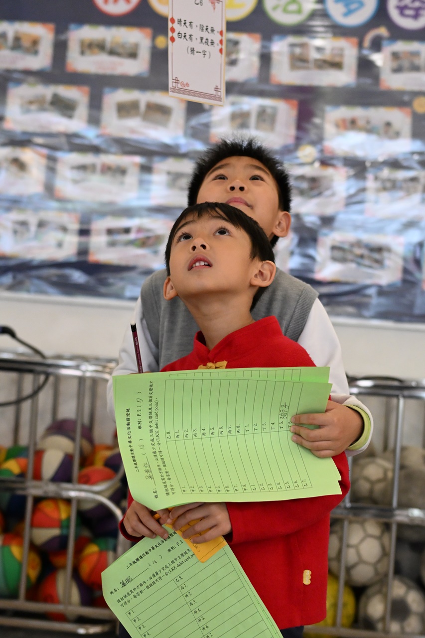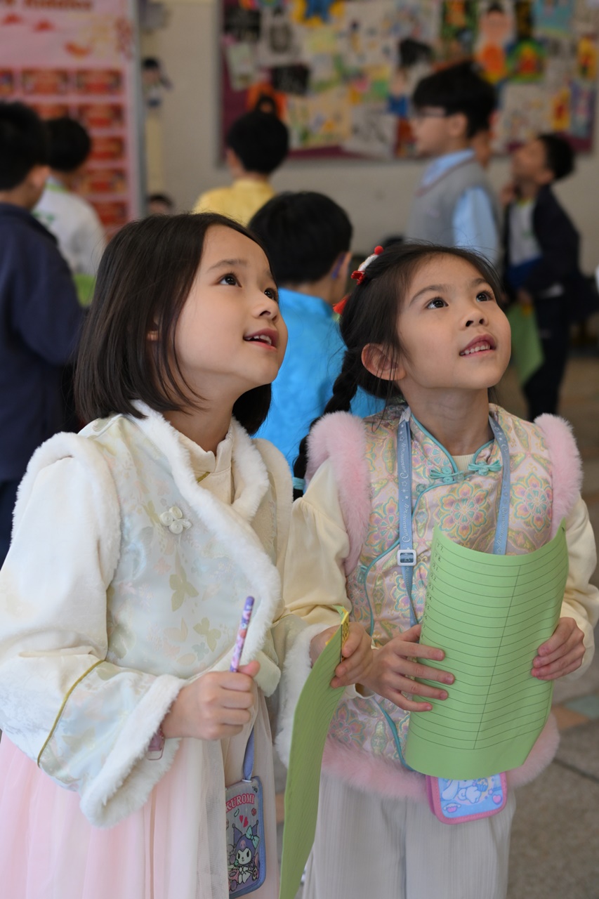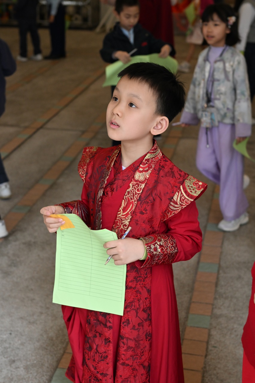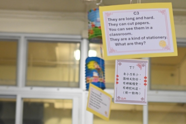 為了弘揚中華優秀傳統文化,中文科與英文科於3月4日合辦「元宵猜燈謎」聯課活動。活動當日,二年級的同學們穿着華服,滿懷興致地投入猜燈謎環節,現場氣氛既熱烈又喜慶。同學們認真思索謎底,彼此交流,開心競猜,在歡聲笑語中體驗元宵節的樂趣,同時亦加深了同學對中華文化的認識與欣賞。