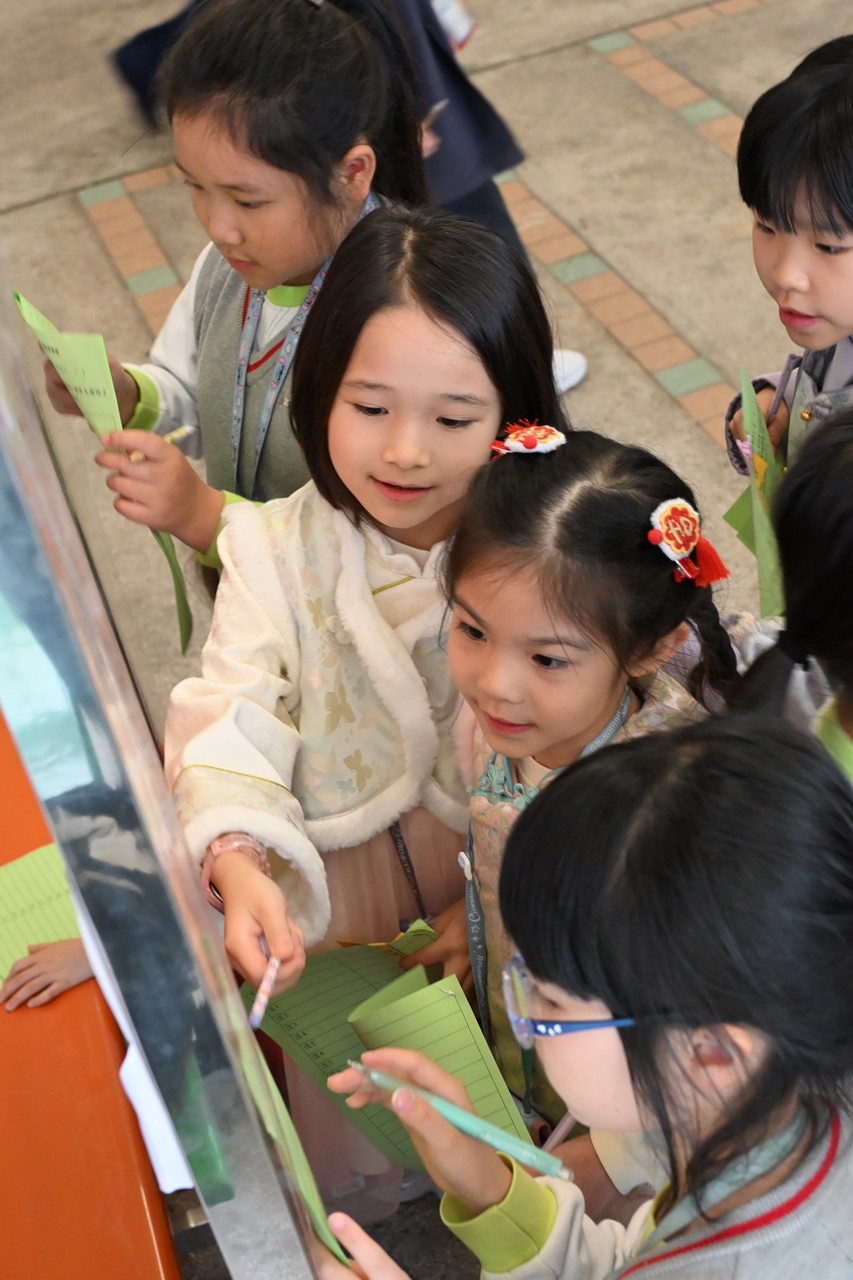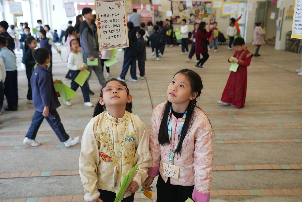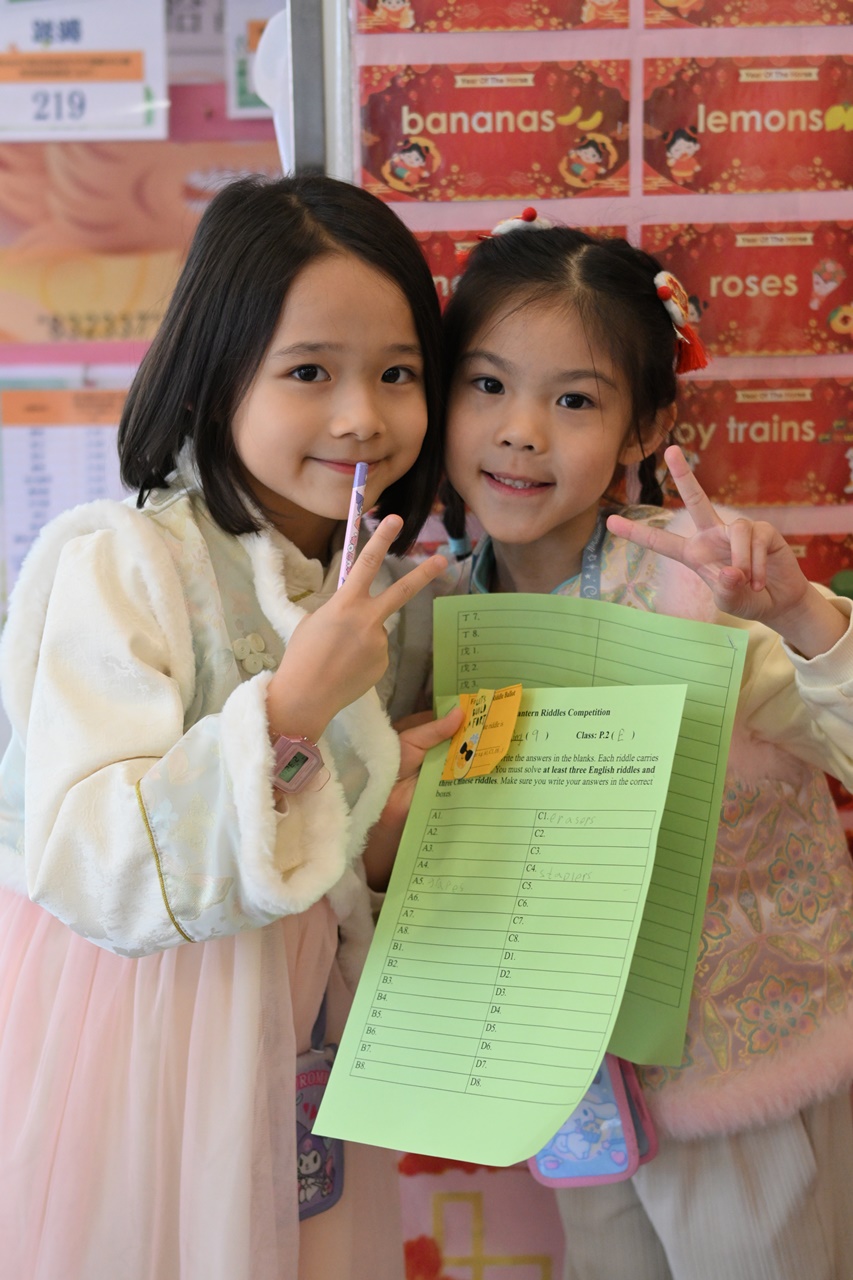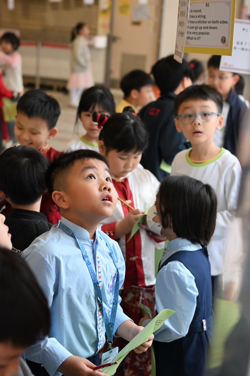 為了弘揚中華優秀傳統文化,中文科與英文科於3月4日合辦「元宵猜燈謎」聯課活動。活動當日,二年級的同學們穿着華服,滿懷興致地投入猜燈謎環節,現場氣氛既熱烈又喜慶。同學們認真思索謎底,彼此交流,開心競猜,在歡聲笑語中體驗元宵節的樂趣,同時亦加深了同學對中華文化的認識與欣賞。