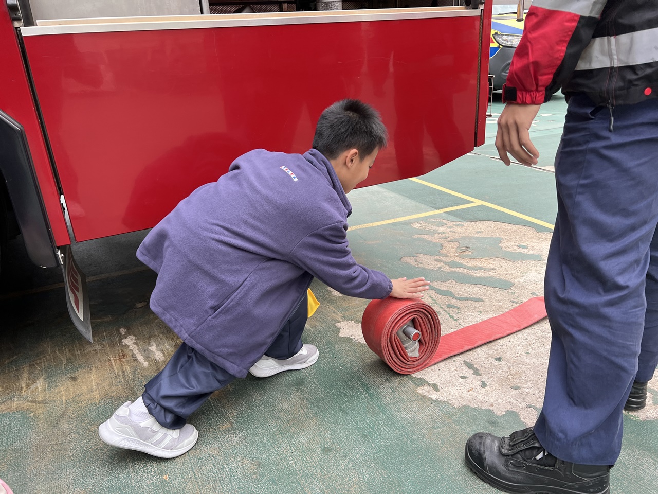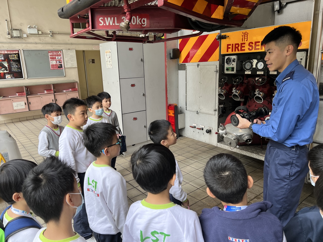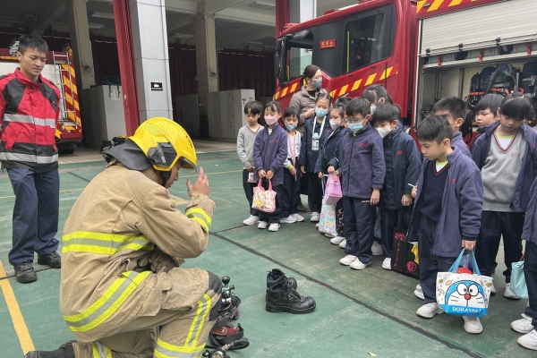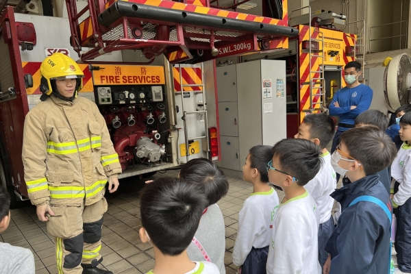學生實地考察消防局,學習有關消防知識,認識消防車輛和消防裝備,以及了解消防員的工作。