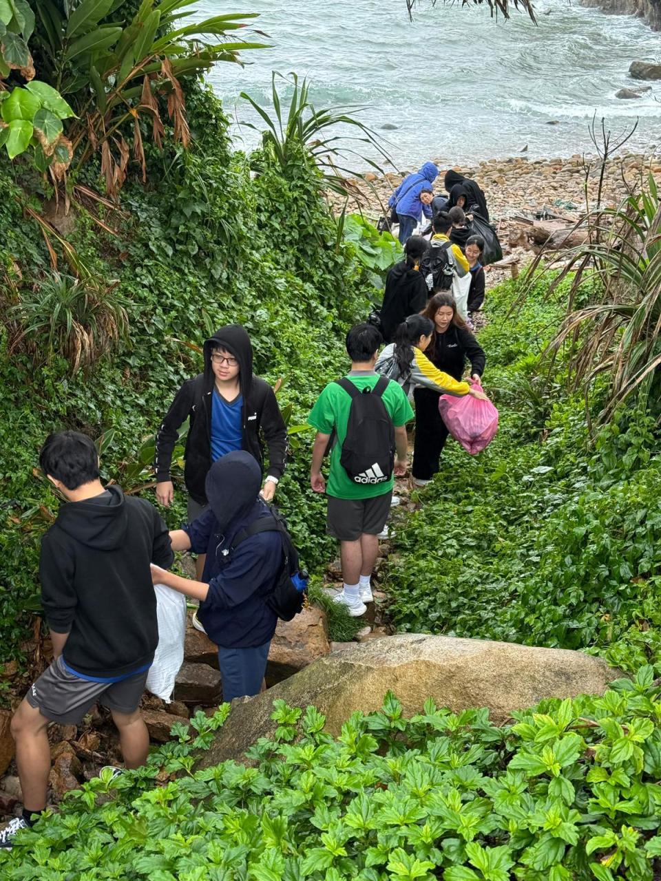 Even with grey skies and powerful gusts of wind, a group of conscientious students showed that a little rain wouldn't stop them from helping the planet. On 28 February, 2026, they headed to Lung Ha Wan for a clean-up that turned into a real lesson in taking care of nature. Even though the weather was rough, everyone felt like they were doing something that was purposeful. They got soaked and wind-blown, but they spent an hour picking up stuff like plastic bottles and old fishing gear.