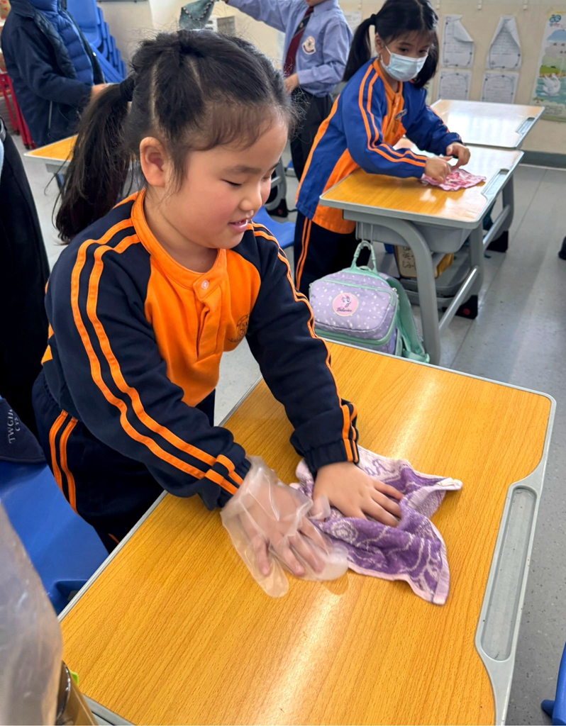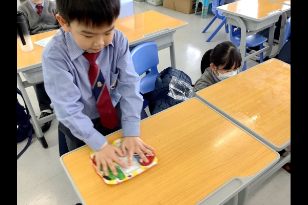 為鼓勵同學愛護校園,培養同學的服務精神,本校於新學期的第一天舉行「新學期新氣象:環保校園清潔日」活動,同時藉此清潔活動為公益金籌款。活動當天全校師生進行課室清潔,認真打掃課室每一角落。感謝各位家長及同學慷慨解囊,踴躍參與善舉。