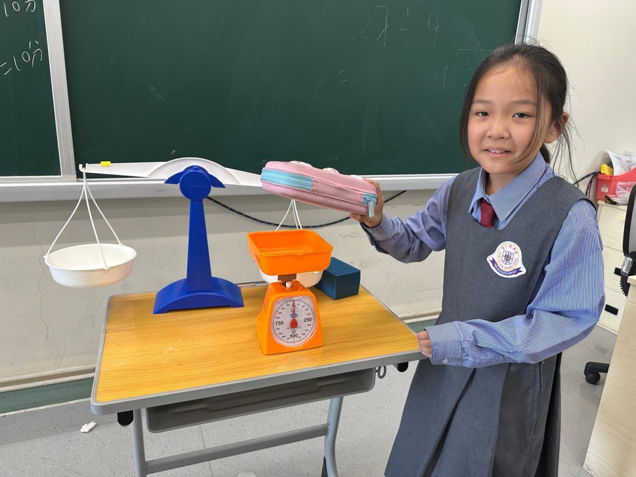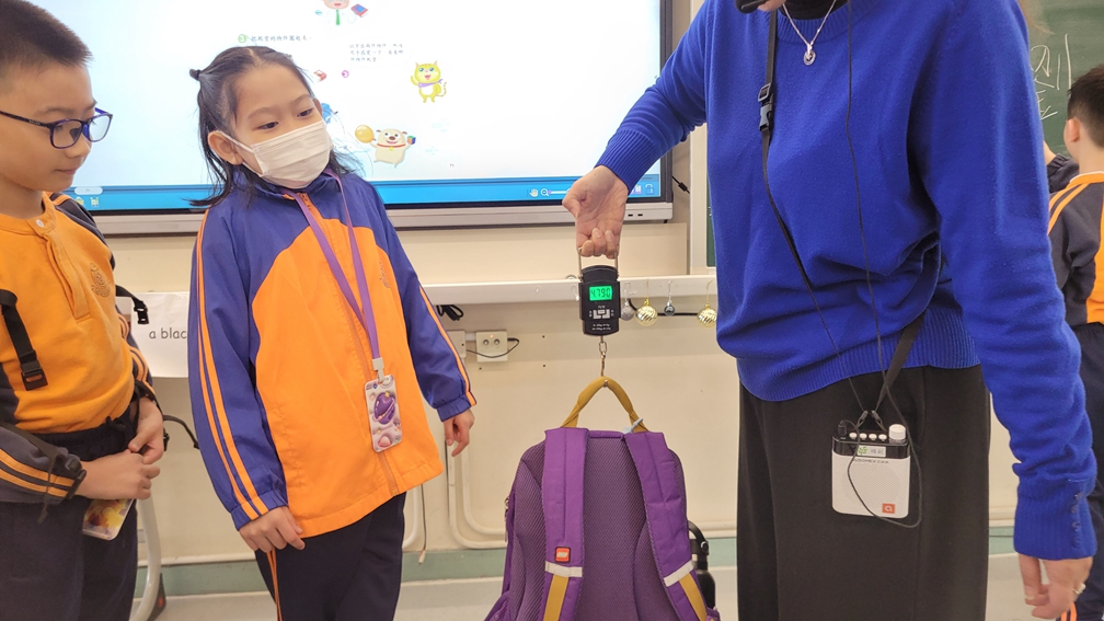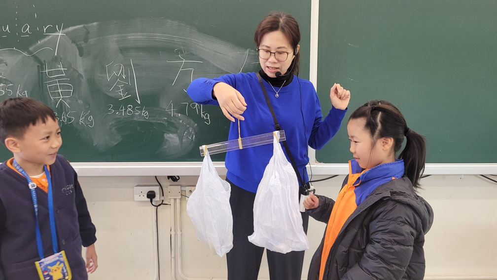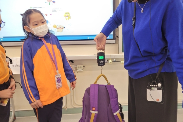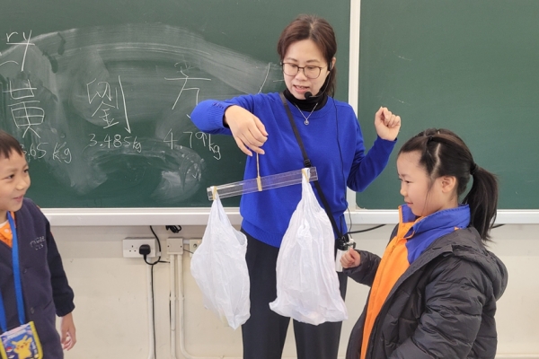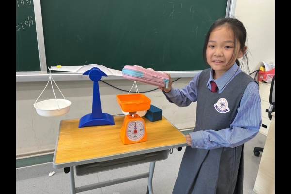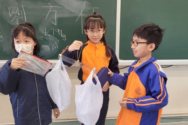 三年級數學老師在教授「重量的認識」課題時,為同學安排不同類型的教學活動。同學們正在課堂上使用自製天平、天平及座枱磅測量不同物品的重量。他們神情專注,互相討論,顯示出對學習的熱情,展現了學生透過實際操作來探索數學概念的良好學習經驗。