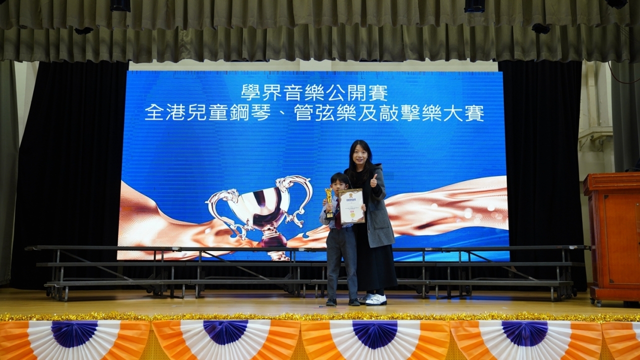 二年級胡同學於十月初參加由香港兒童表演藝術交流協會主辦的學界音樂公開賽「全港兒童鋼琴、管弦樂及敲擊樂大賽」,在P1-P3 流行鼓項目中獲得亞軍!恭賀他勇奪佳績!