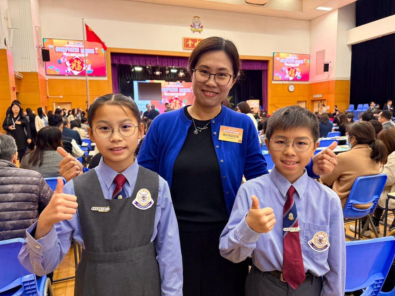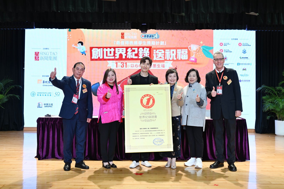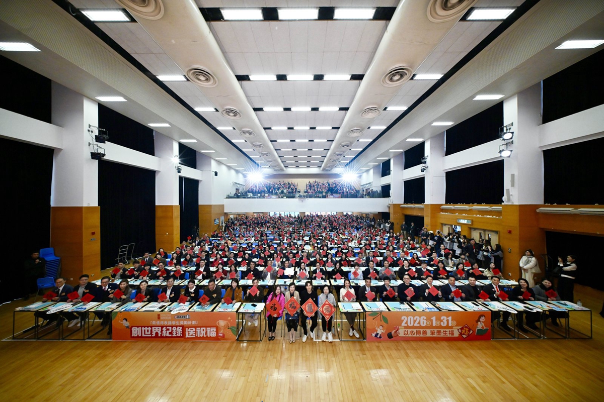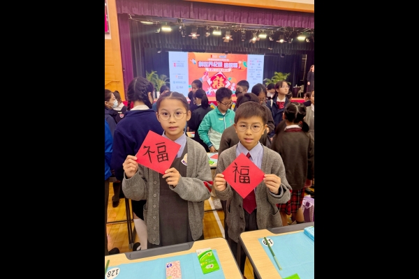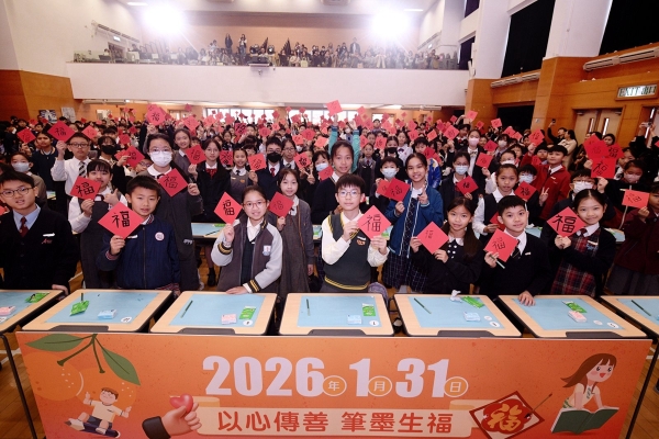 當日,楊副校長帶領兩位學生大使參加大會的「以心傳善 筆墨生福 共創世界紀錄 」活動,共同以書法筆書寫「福」字,攜手挑戰共創世界紀錄,並趁農曆新年來臨之際向大家傳遞祝福,與在場一眾嘉賓一起發揮暖暖的正能量!
