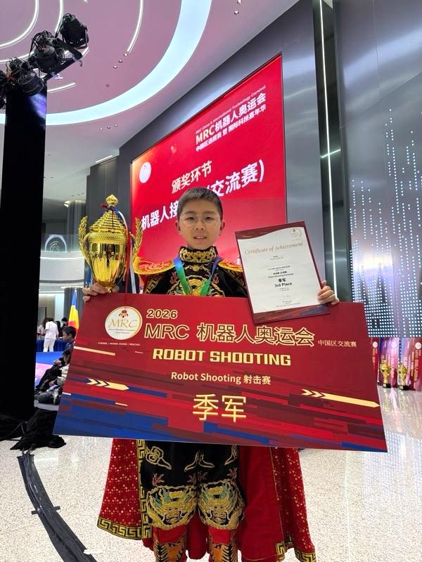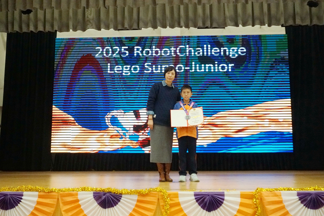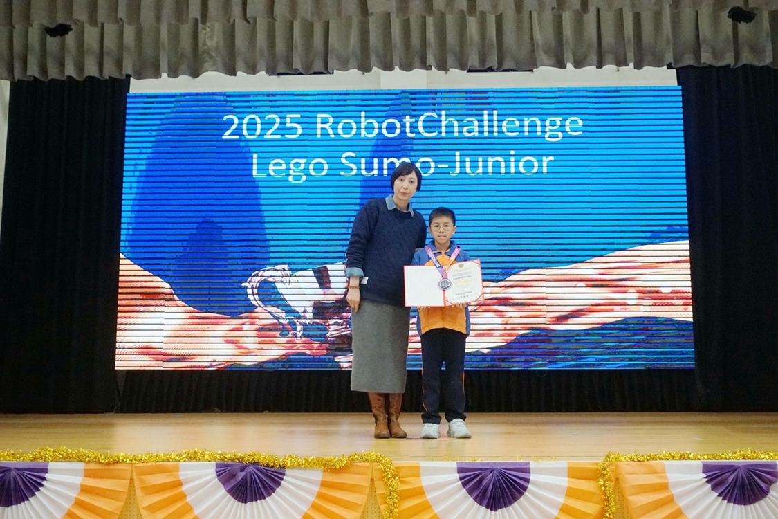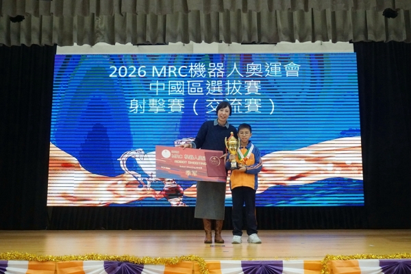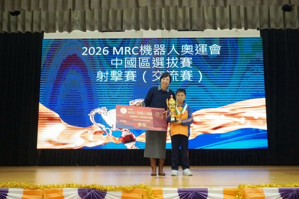 陳同學於2025年8月代表香港前往北京科技大學參加2025 RobotChallenge 世界機器人盛會,奪得樂高相撲賽初級組二等獎,是次陳同學與內地精英及海外隊伍交流競賽,見識最尖端AI技術,更與不同國家學生交流擴闊視野。此外,陳同學於2026年1月份參加2026 MRC 機器人奧運會中國區選拔賽射擊賽(交流賽),奪得季軍。希望陳同學繼續於各類型STEAM比賽中發光發亮,為校爭光。
