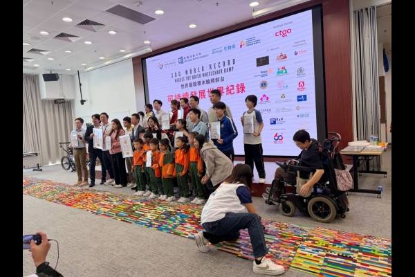 本校有十位六年級男同學,參加由極地同行(Wheel for Oneness)所舉辦之「積木輪椅斜台大挑戰」活動,有關活動舉行的目的,是讓學生了解輪椅人士的需要,從而提升同學之同理心。參加者在參與有關活動的過程中,成功合力製作出世界最闊之輪椅斜台,打破世界紀錄。