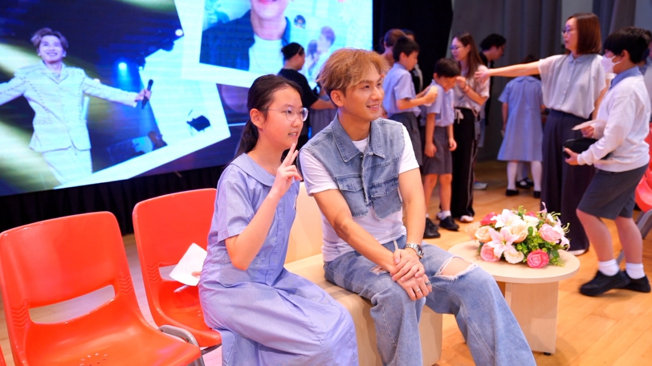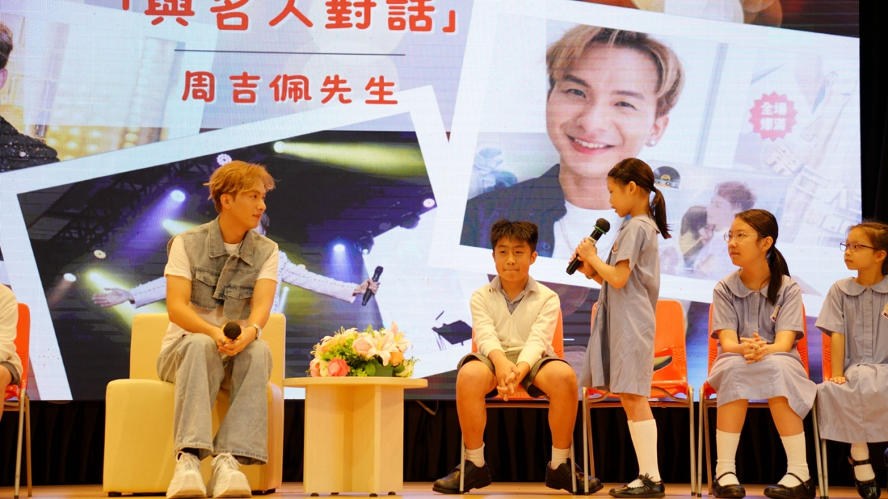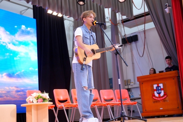 在緊張的考試前夕,「與名人對話」活動迎來本學年第二擊,邀請到「第一屆中年好聲音」冠軍,歌手周吉佩先生擔任嘉賓。由我們的演森小記者進行訪談,吉吉Sir耐心、風趣地分享,從童年趣事,到遇見挫折勇於追夢、不放棄的精神。最後,吉吉Sir先獻唱喻表着他實現夢想的代表作《第三人生》,再與一眾同學大合唱歌曲《紅日》,為大家考試前好好打氣。同學們都十分投入、興奮呢!