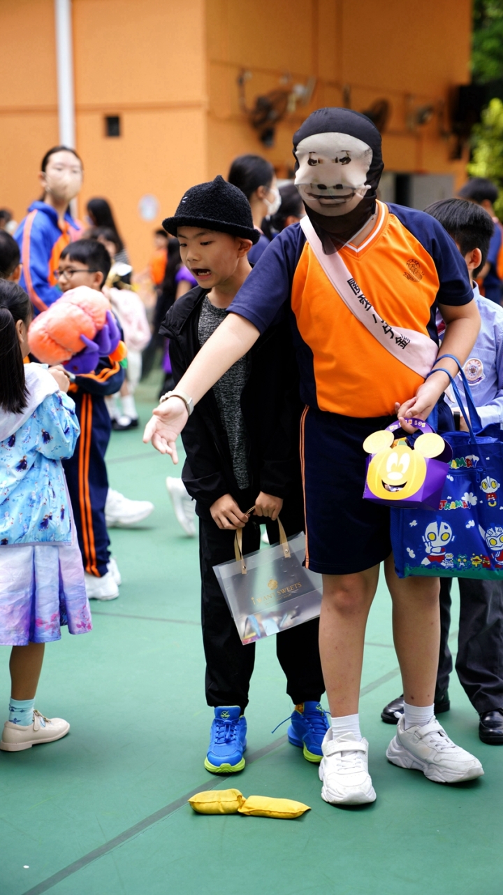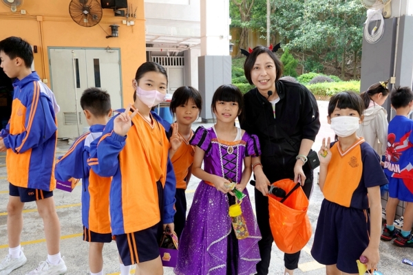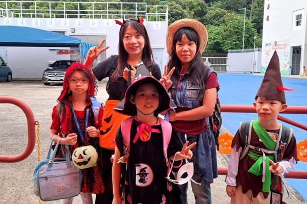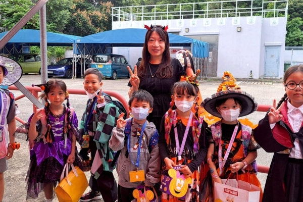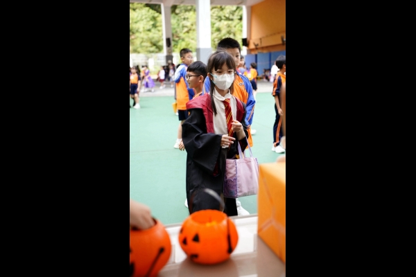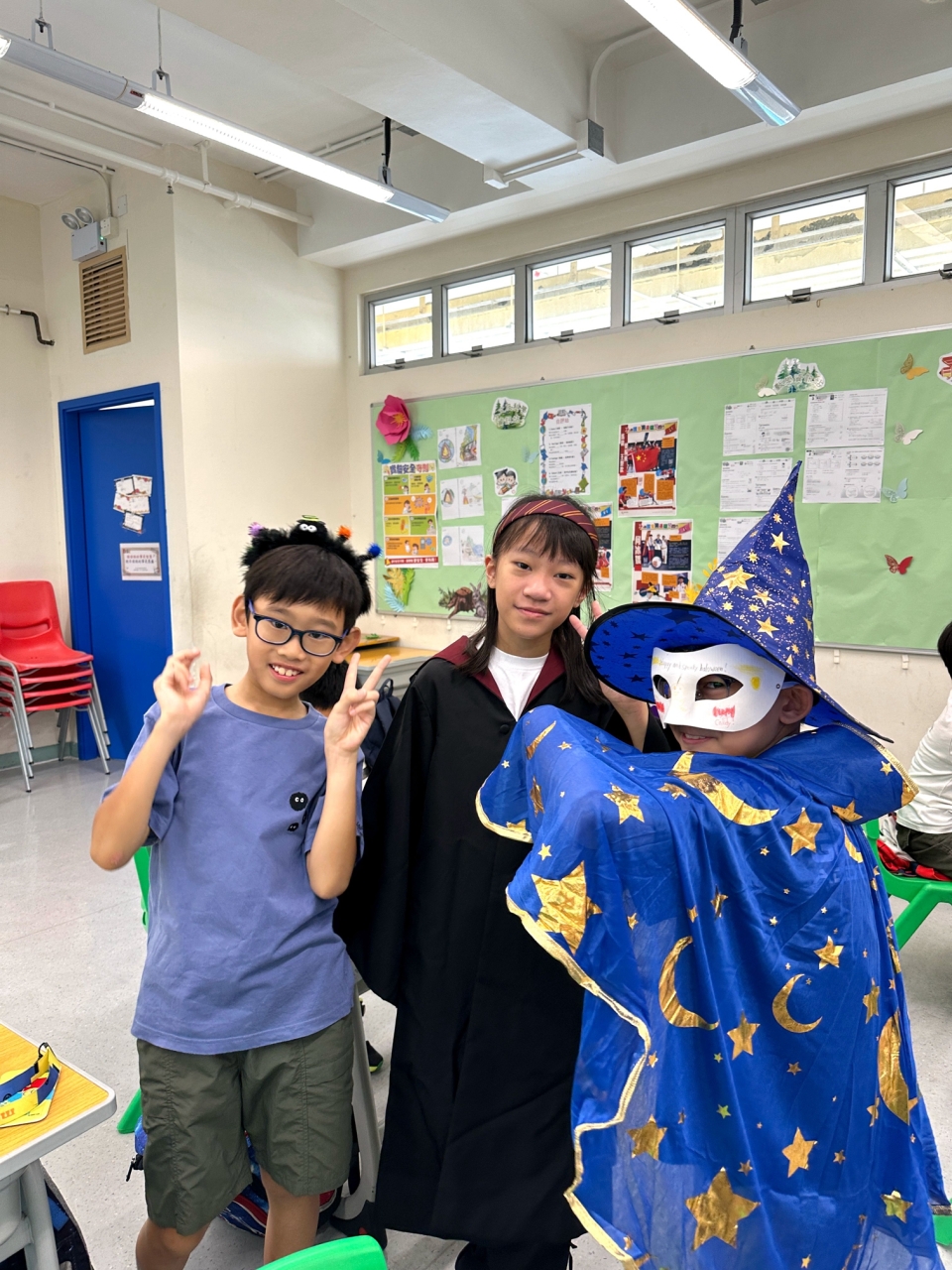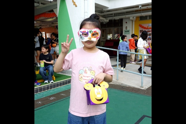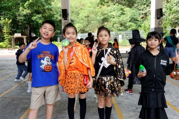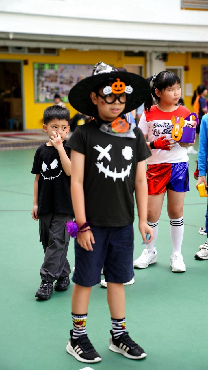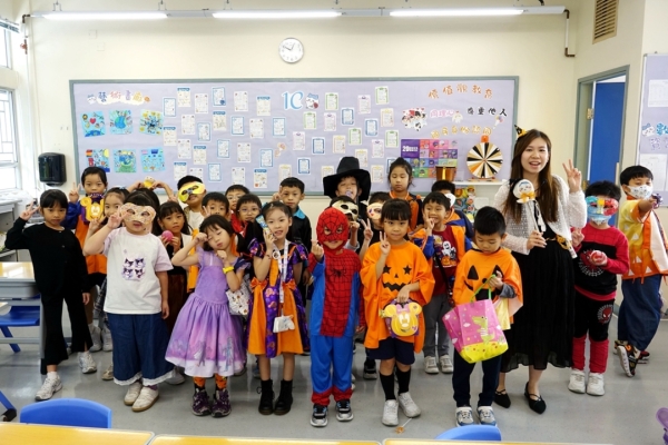 為使同學能認識不同國家的文化,本校於10月31日安排了萬聖節活動,同學當天穿上萬聖節服飾及戴上自己設計的面具回校,同學除了可參與攤位遊戲,還從校長及外籍老師手上拿到糖果,氣氛相當熱鬧呢!