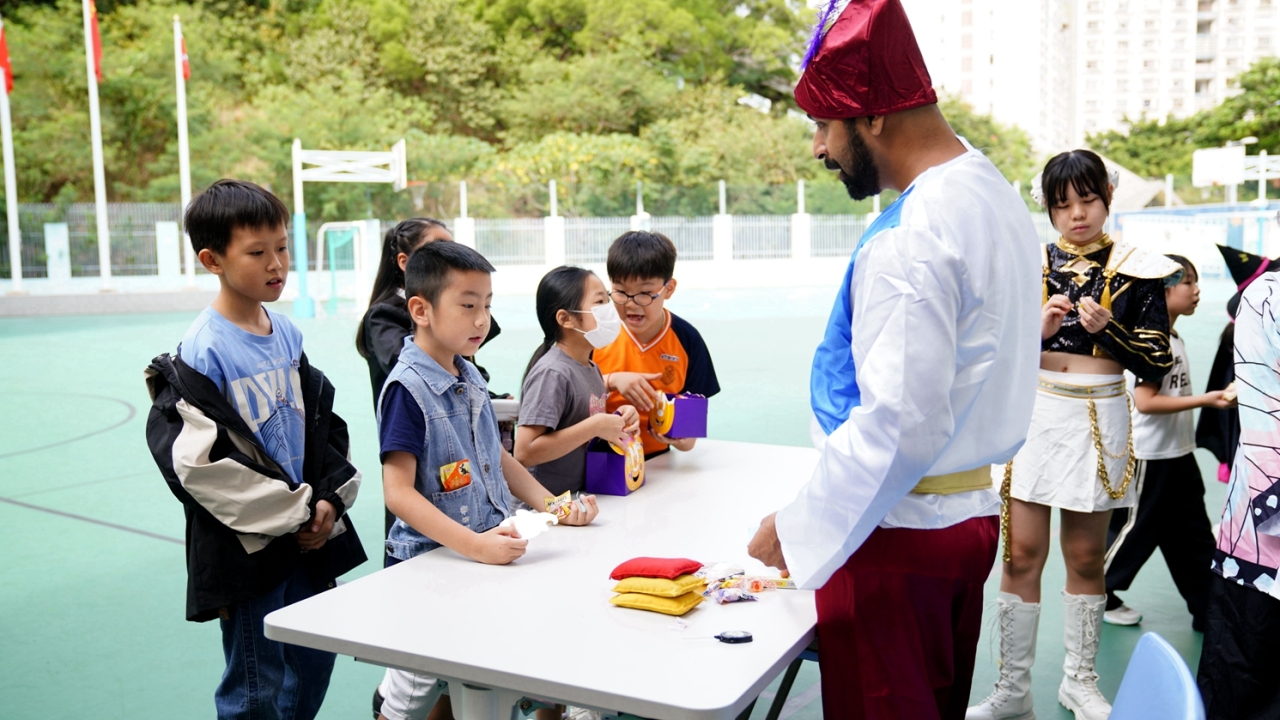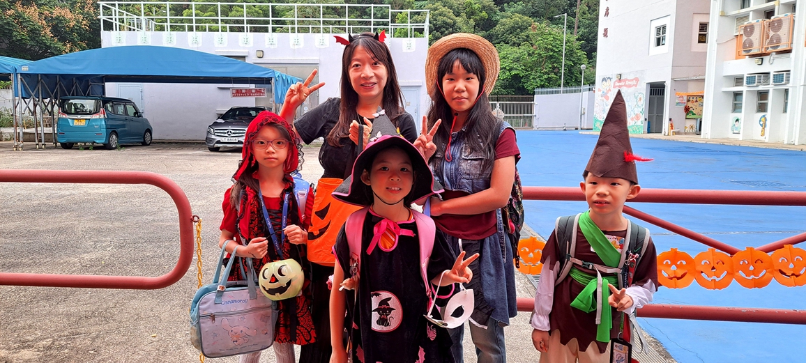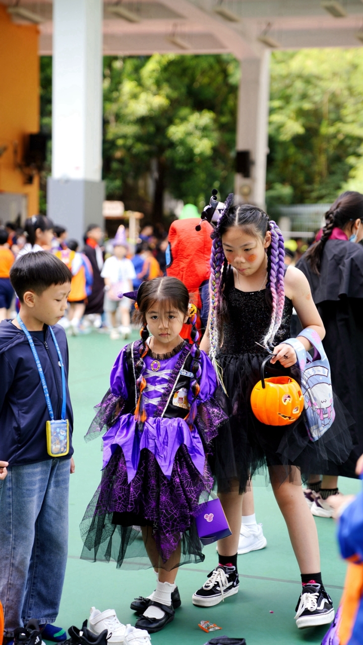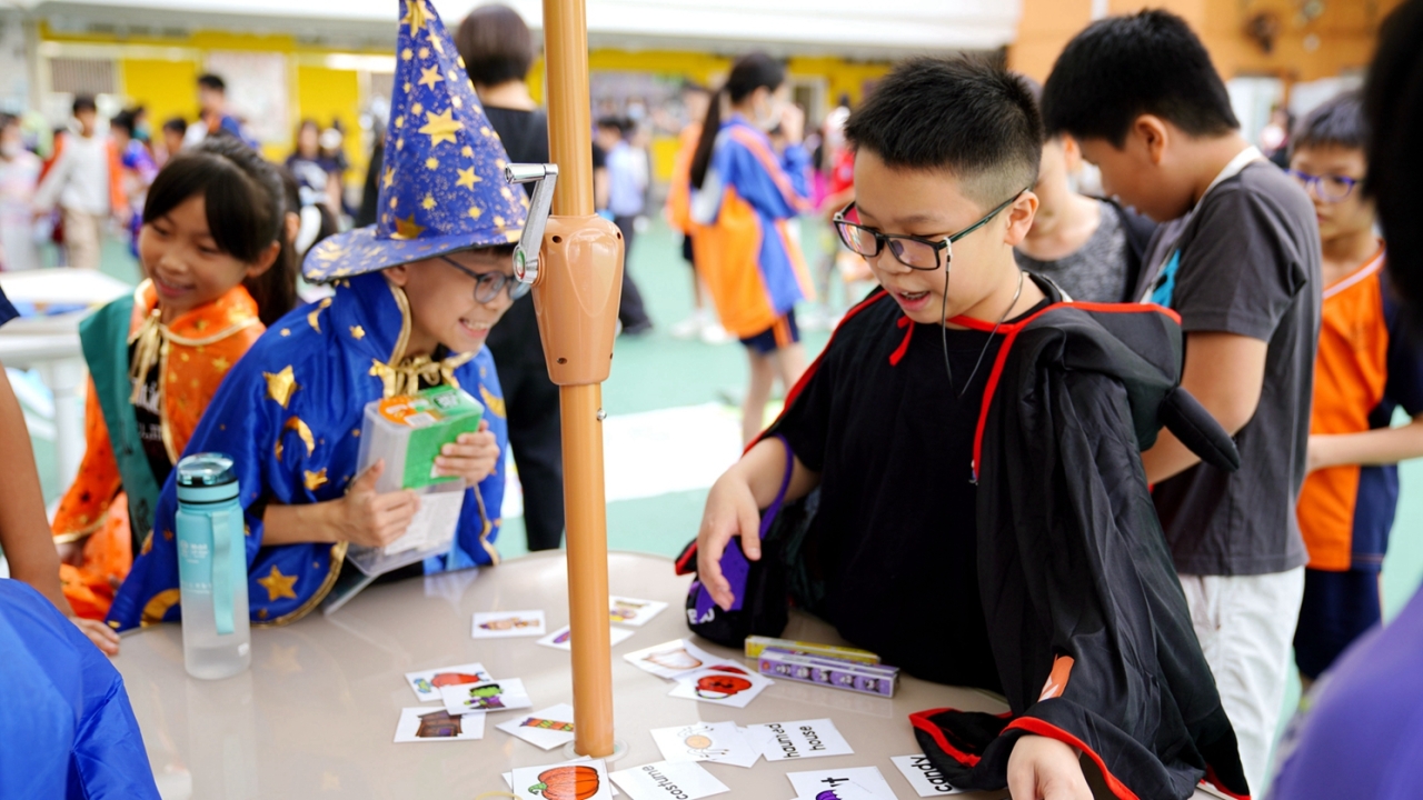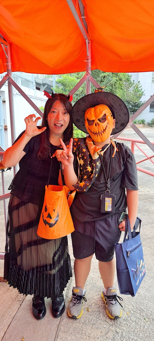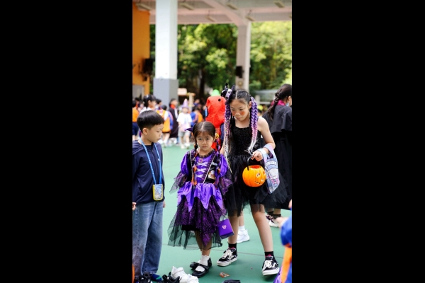 為使同學能認識不同國家的文化,本校於10月31日安排了萬聖節活動,同學當天穿上萬聖節服飾及戴上自己設計的面具回校,同學除了可參與攤位遊戲,還從校長及外籍老師手上拿到糖果,氣氛相當熱鬧呢!