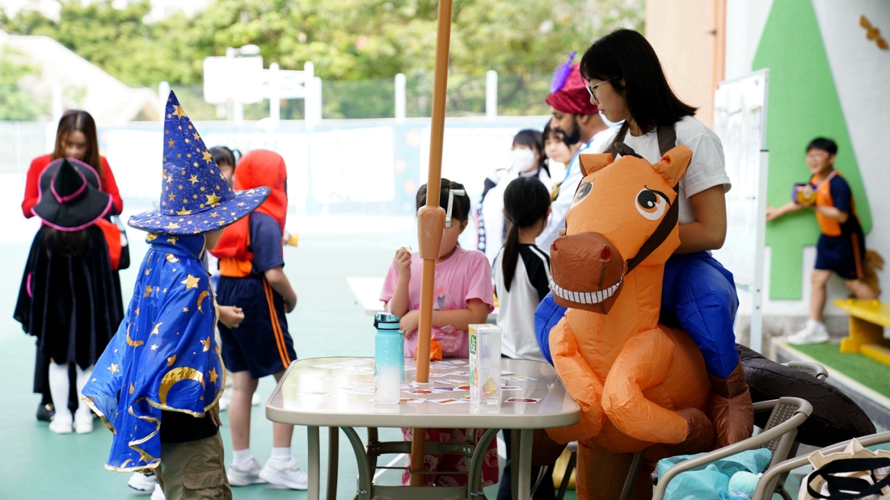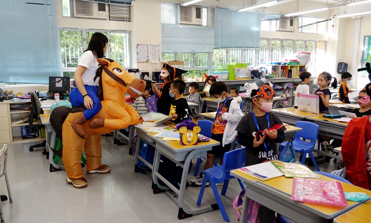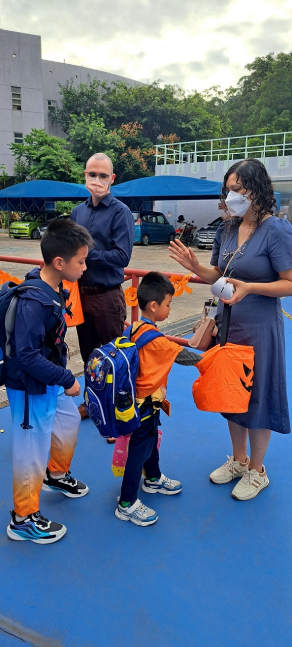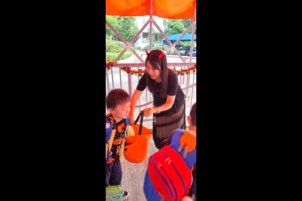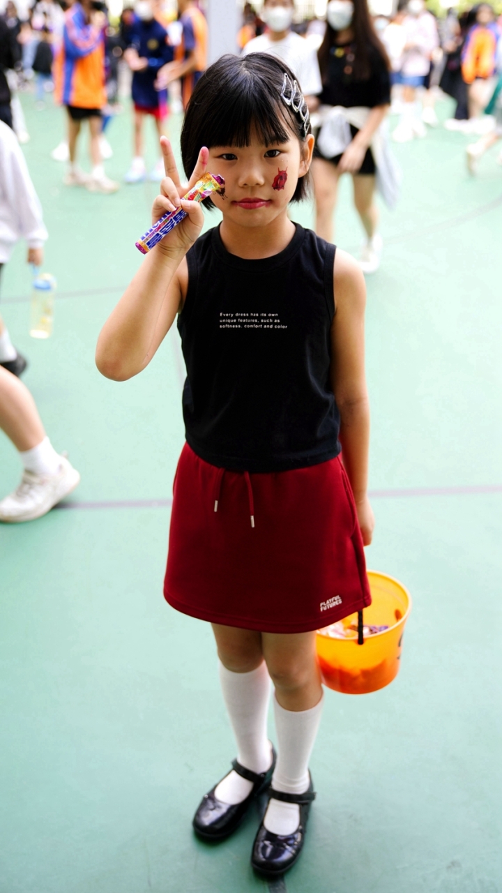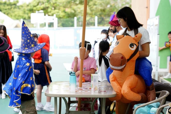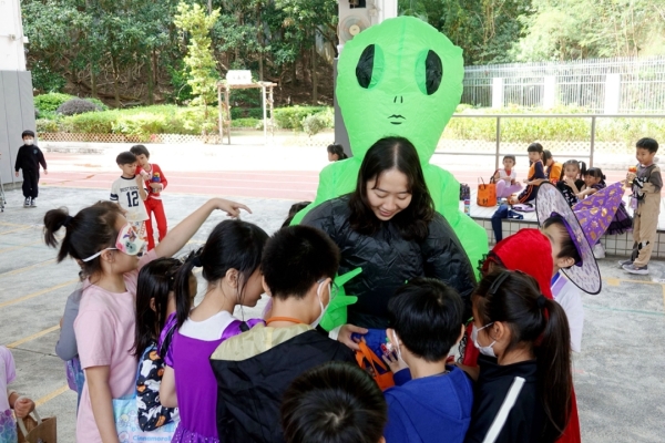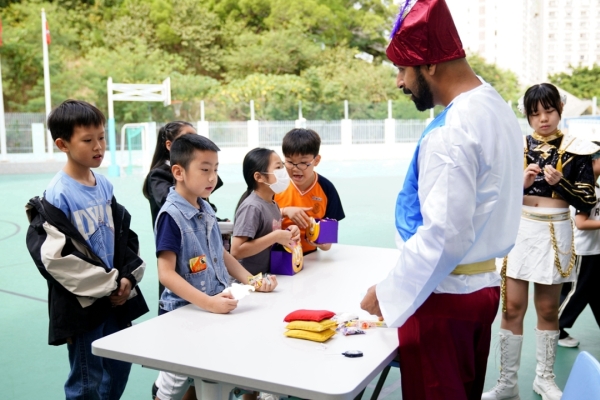 為使同學能認識不同國家的文化,本校於10月31日安排了萬聖節活動,同學當天穿上萬聖節服飾及戴上自己設計的面具回校,同學除了可參與攤位遊戲,還從校長及外籍老師手上拿到糖果,氣氛相當熱鬧呢!