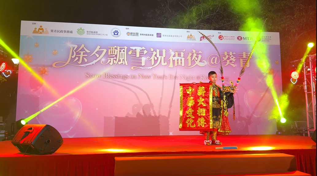 陳學賢同學於12月31日在青衣海濱公園代表本校出席「除夕飄雪祝福夜@葵青」,並表演四川變臉。當晚演出十分成功,更贏來現場如雷的掌聲。大家再來欣賞一下當晚精彩的表演吧!