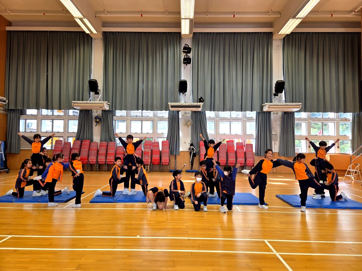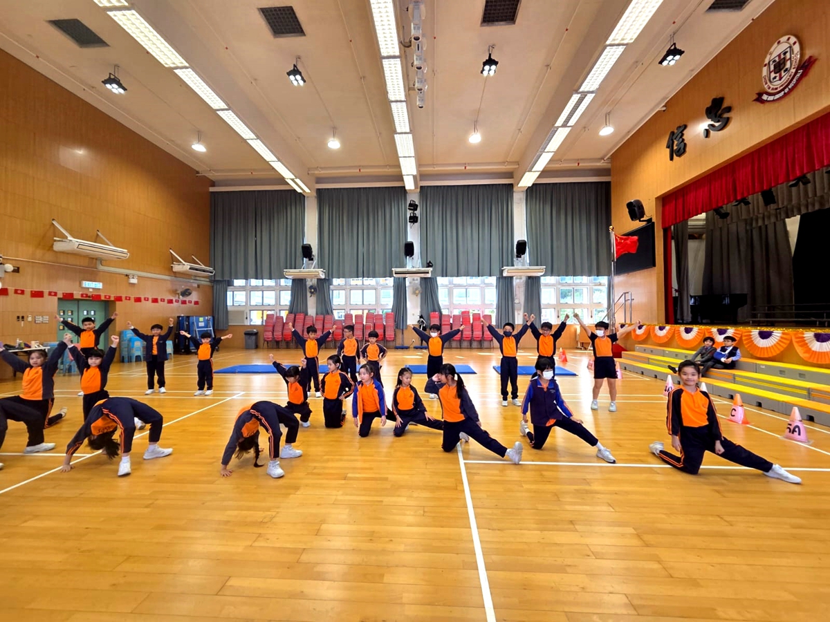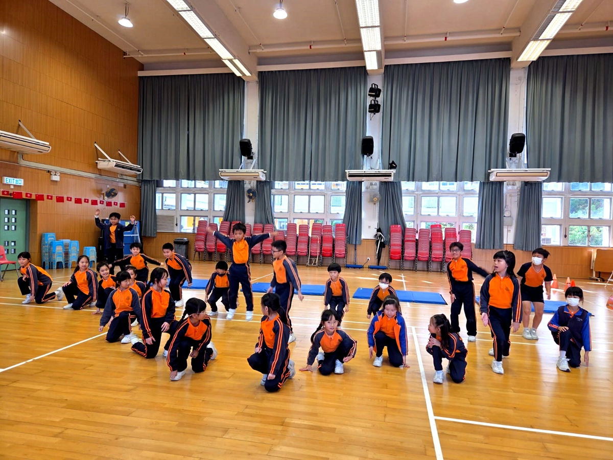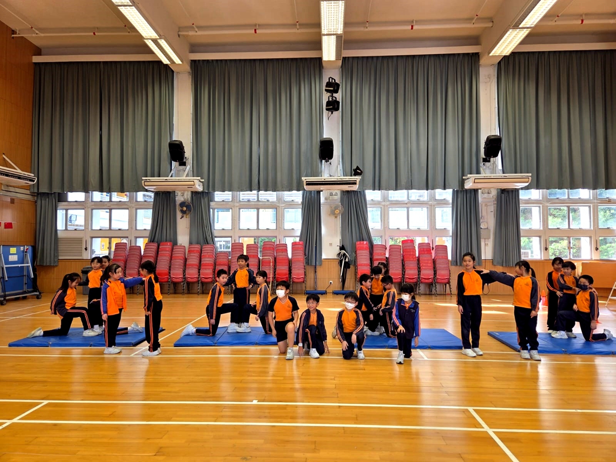 三年級進行全方位學習課-啦啦隊課堂,同學學習啦啦隊的各個動作,表現投入,享受當中的樂趣。