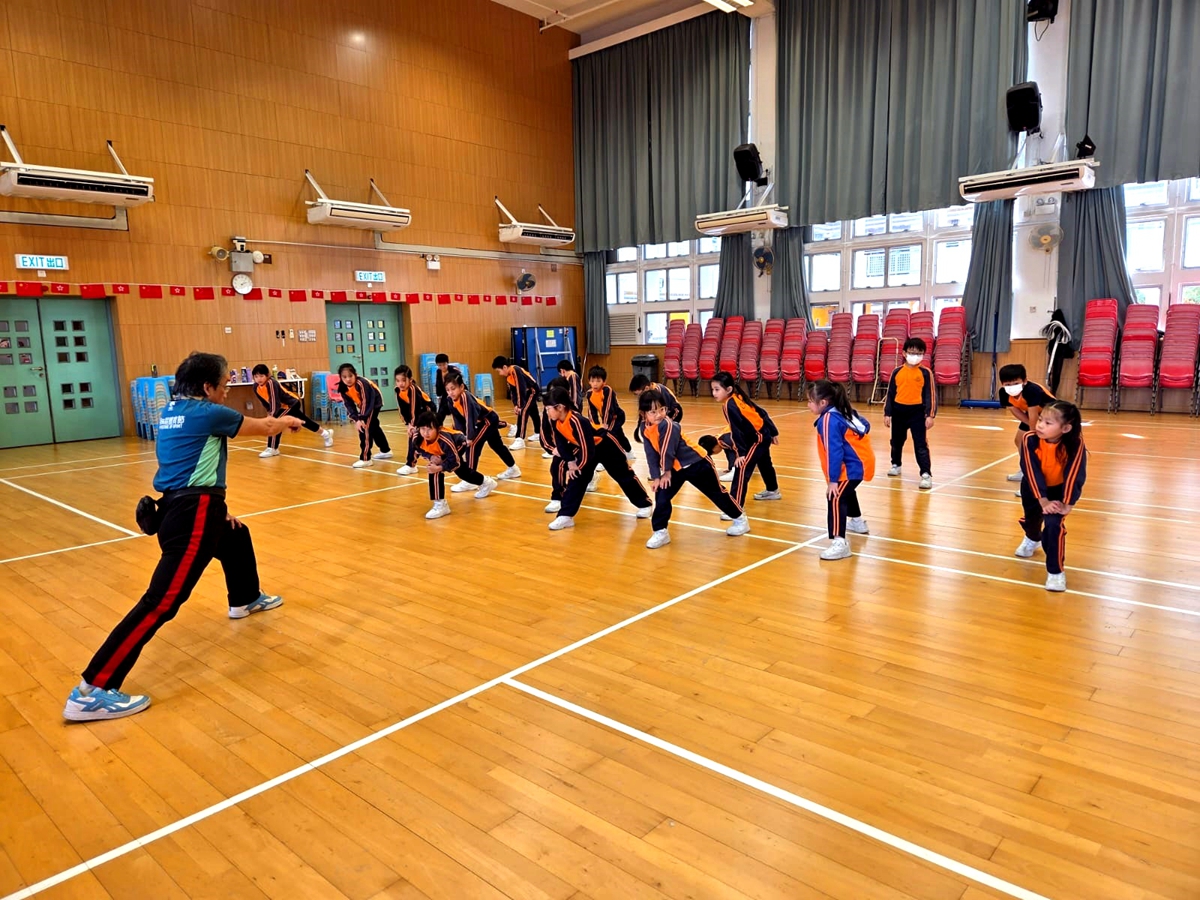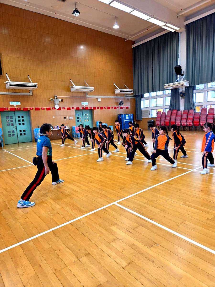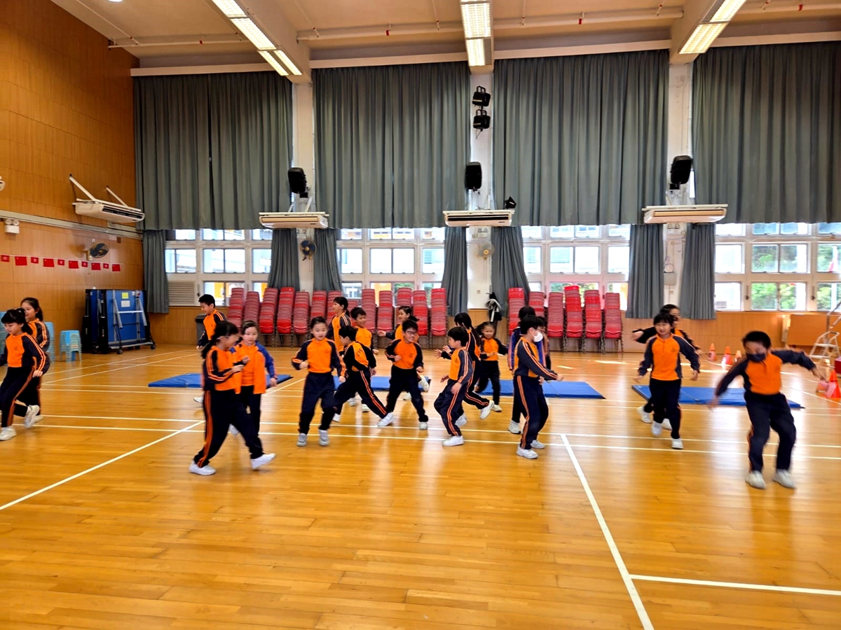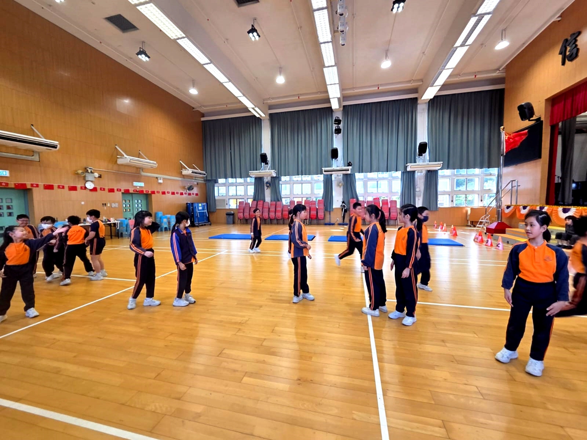 三年級進行全方位學習課-啦啦隊課堂,同學學習啦啦隊的各個動作,表現投入,享受當中的樂趣。