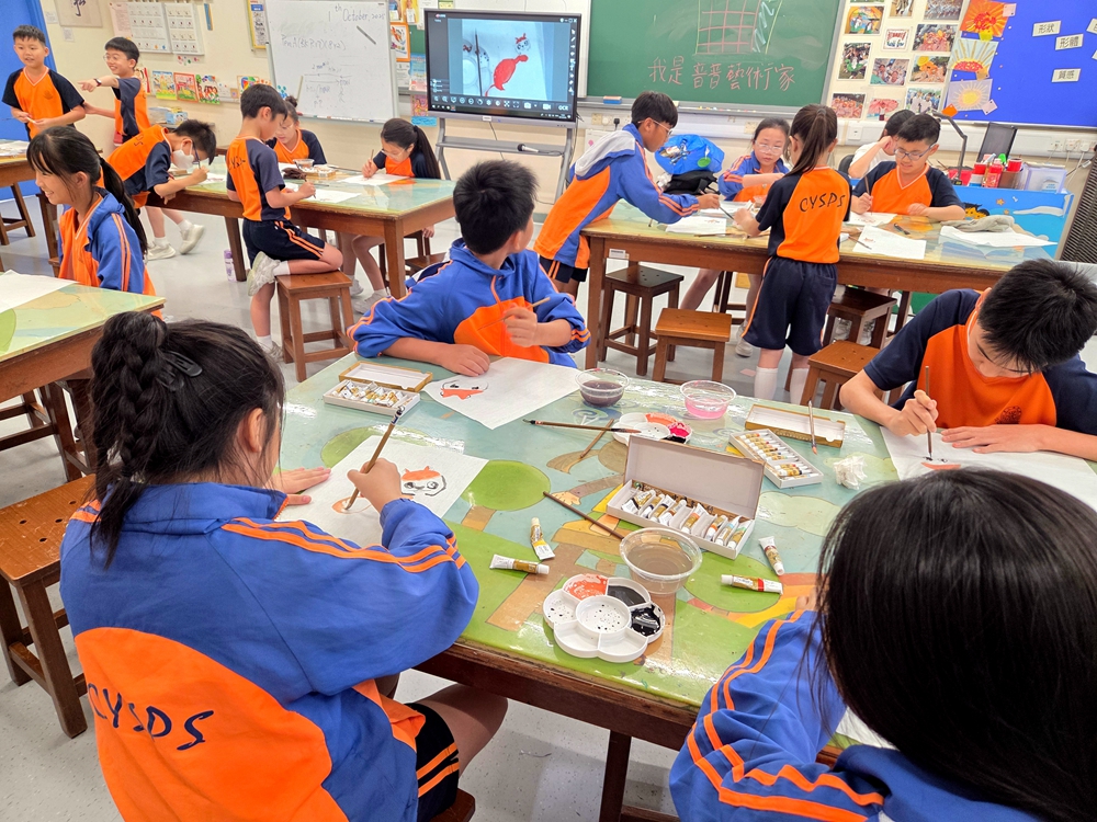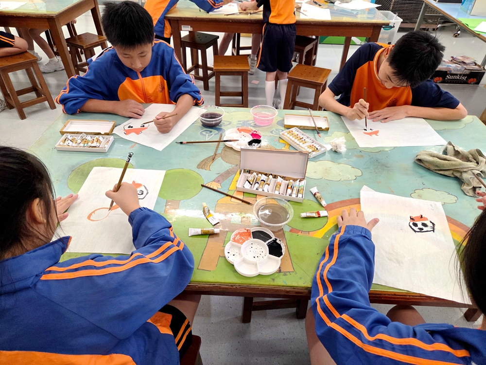 本校於下午的POWER-up「森」動課程邀請了專業拉菲爾美術學院導師教授水墨畫。學生積極投入課堂,並於課堂中尋找到個人的興趣,大家都樂在其中。