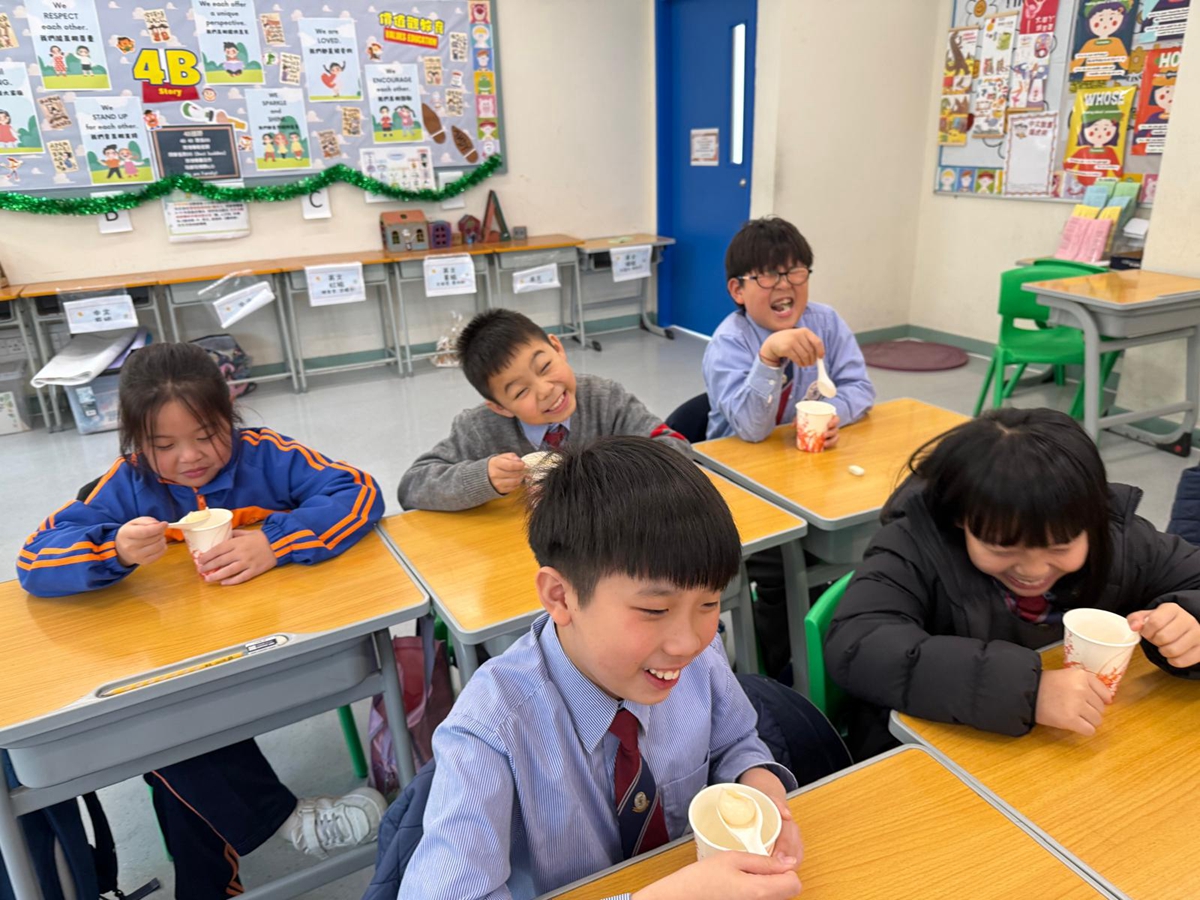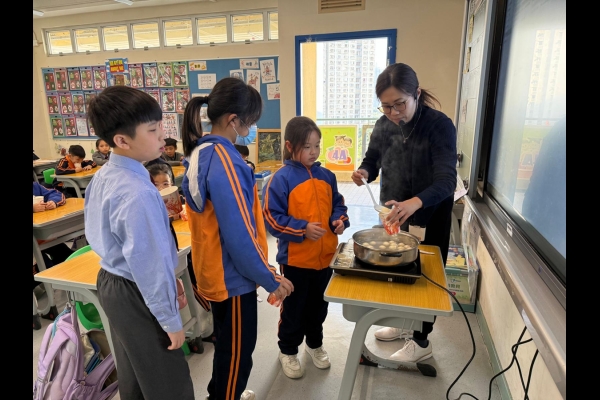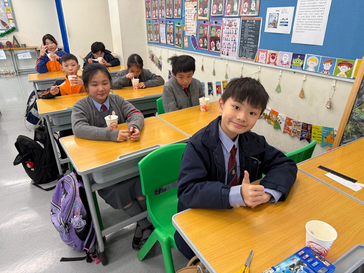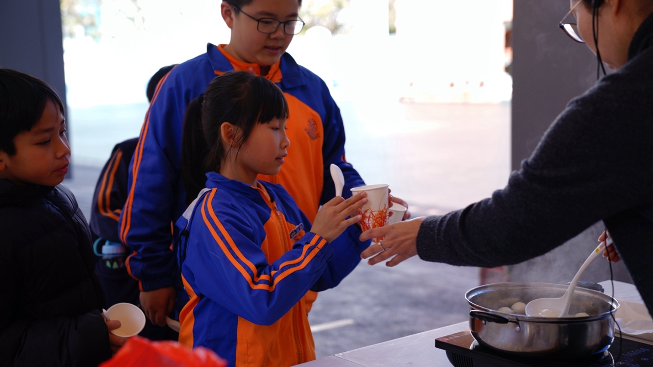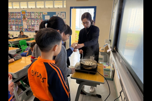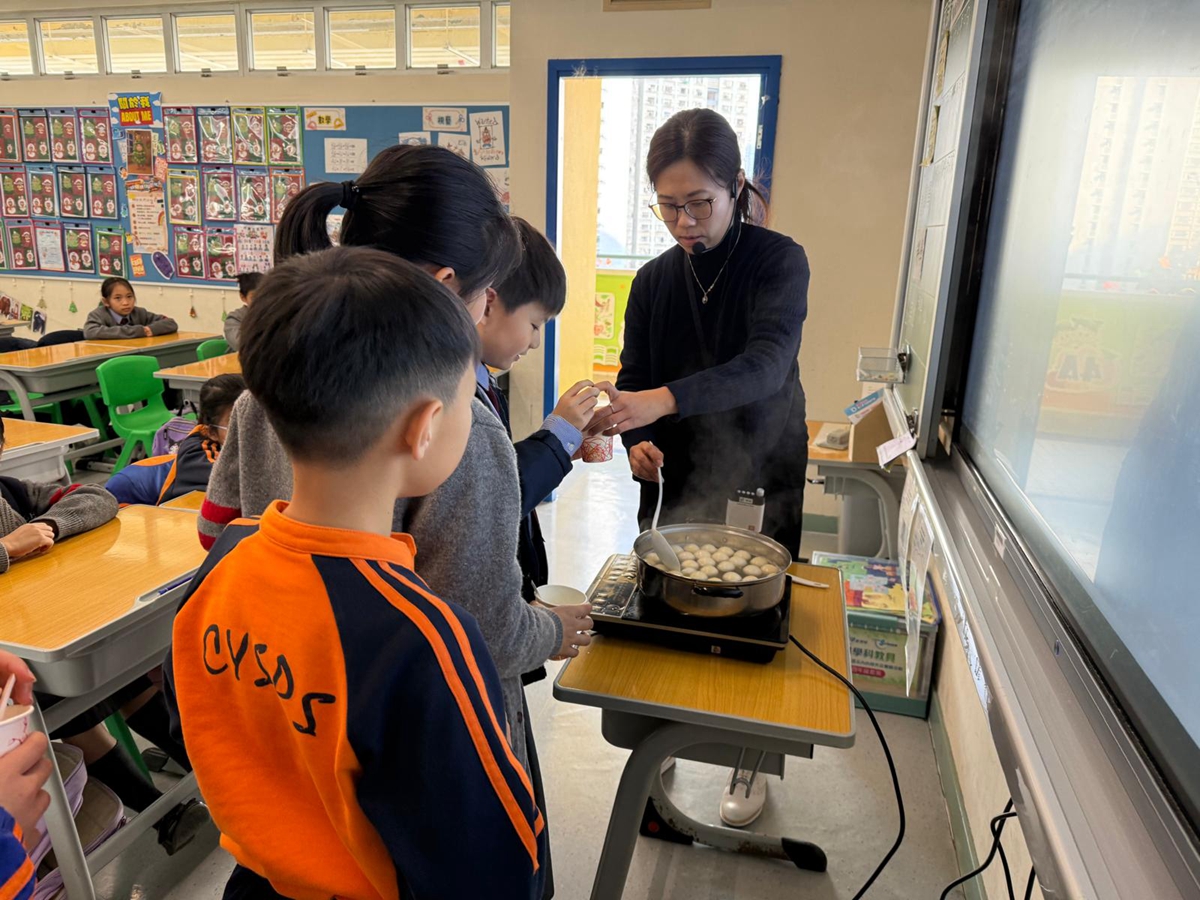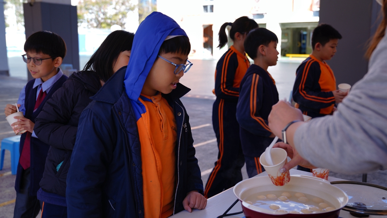 四年級學生於專題研習課認識中國傳統小吃—湯圓。他們不僅品嚐到軟糯香甜的湯丸,更從熱氣蒸騰中感受到團圓溫暖的中華魅力。