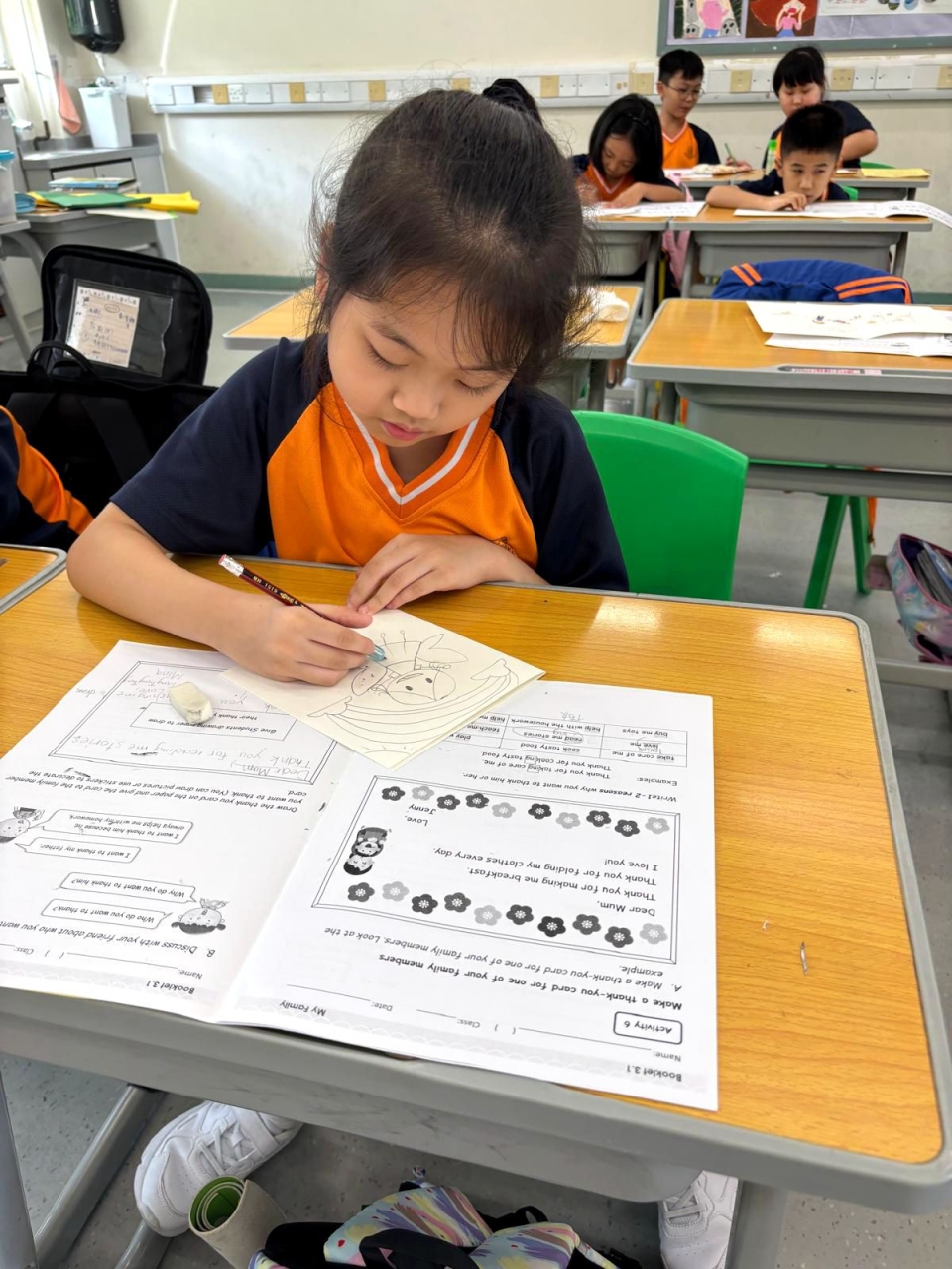 The theme of P3 Reading Across the Curriculum in semester 1 is ‘My Family.’ They read a book about grandparents. Then, they conducted an interview about what housework they can help with at home. Finally, they drew a thank-you card for one of their family members. The students were engaged in the activities and learned how to show love to their family members. They enjoyed the activities very much.